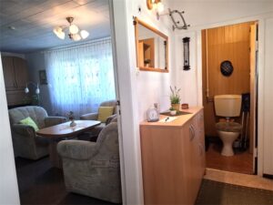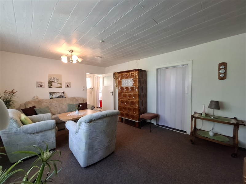 - Gasheizung (2001) + Kachelofen im Wohnzimmer