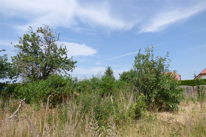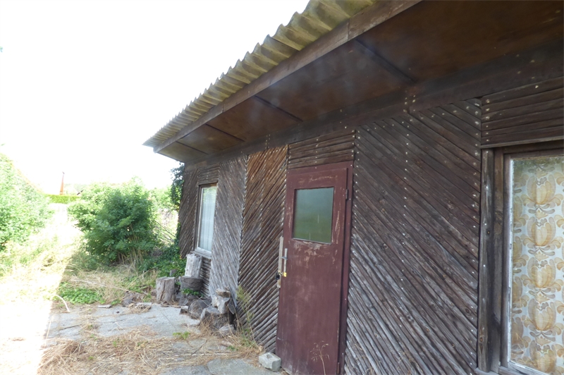 Auf dem Grundstück steht noch ein ehemaliger, ca. 27m² großer Wochenendbungalow aus den 80er Jahren, welcher schon sehr viele Jahre im Dornröschenschlaf liegt. Ein kleiner Abrissschuppen, neben dem alten Brunnen, steht in unmittelbarer Nähe. Einige Obstbäume und -sträucher sind in der naturnahen Bepflanzung zu erkennen.