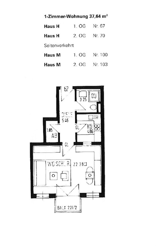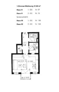 - 1-Zimmer-Wohnung im 2. OG mit Wohn-, Schlafzimmer, Küche, Duschbad, Abstellkammer und Flur