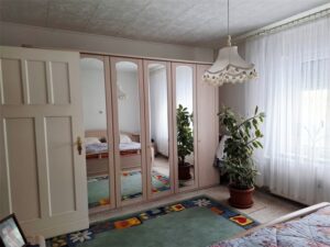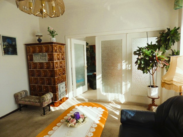 Ein Highlight ist die 3-flügelige Zwischentür mit Glaseinsätzen zwischen den beiden Wohnzimmern im Hochparterre. So können Sie flexibel entscheiden, nutzen Sie bei Bedarf zwei einzelne Wohnzimmer oder genießen Sie ein großes Wohnzimmer. Weitere schöne Elemente aus dem vergangenen Jahrhundert, wie z.B. die Türen im Haus, der Kachelofen im Hochparterre, das Treppenhaus sowie die ehemalige Scheune begeistern mit ihrer Ausstrahlung.