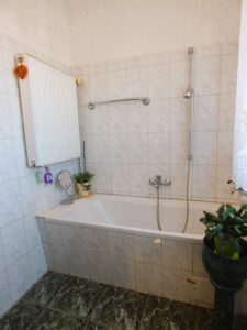 Das Wohnhaus ist komplett unterkellert, Nutzfläche im Keller ca. 83 m² mit einer Raumhöhe von ca. 1,90 m. Vom Treppenhaus und über zwei Außenzugänge gelangen Sie bequem in den Keller, mit Vorratsraum, Durchgangsvollbad mit Waschmaschinenanschluss sowie Party- und Heizungsraum.
