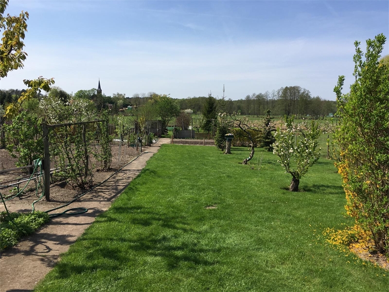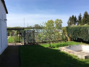 Der große Garten mit Gewächshaus wird Sie begeistern. Die eigene Ernte der Obstbäume und -sträucher, von Apfelbaum bis Weinrebe, wird Sie täglich erfreuen. Es gibt reichlich Platz zum Spielen und Toben für die Kleinen, zum Gärtnern und zum Entspannen für die Großen. Dank des Grundwasserbrunnens wird die Pflanzenpflege deutlich erleichtert.